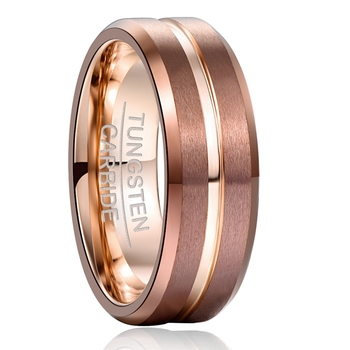 थोक 8 मिमी चौड़ाई प्लेटेड गुलाब गोल्डन पॉलिश बहुमुखी किनारों के साथ पहने हुए शेल पुरुषों के टंगस्टन रिंग गहने उपहार