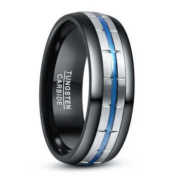 Vendita all'ingrosso anello interno placcato blu 8mm placcato nero esterno circolare con scanalatura obliqua anello da uomo in tungsteno gioielli