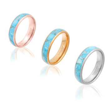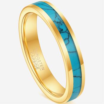 1ชิ้นสี่เหลี่ยมฝังปะการังเทอร์ควอยส์ตัวเลือกแหวนทังสเตนของผู้ชายของขวัญสำหรับสามีแฟนหนุ่มเนื้อหินธรรมชาติแบบสุ่ม