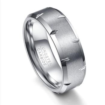 แหวนทังสเตนของผู้ชายร่องขนาดเล็กขัดขอบธรรมชาติกว้าง8มม. ขายส่ง